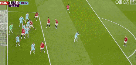 比赛第26分钟,布鲁诺-费尔南德斯起球传中,卡塞米罗头槌击中横梁后,球反弹在伯恩利中场库伦的身上,造成了库伦的乌龙进球。