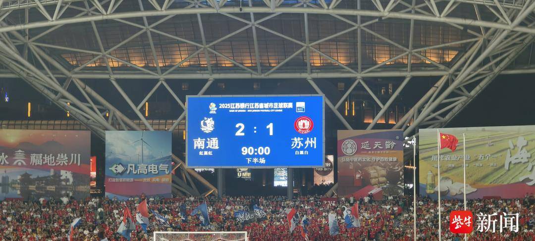 扬子晚报网讯(记者 朱亚运 张添翼)8月31日晚,“苏超”第十轮南通队对阵苏州队比赛在南通体育会展中心打响,经过90分钟激烈角逐,两队共同为31996名观众献上一场精彩对决。最终,“领头羊”南通队2:1战胜苏州队,豪取九连胜,以27分继续占据积分榜榜首,并有望在下一轮提前锁定常规赛第一。
